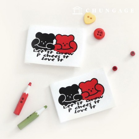Cotton label double-folded bear friends 58852