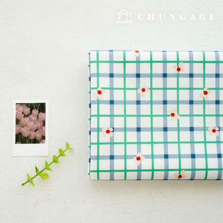 면 옥스포드원단 체크 꽃무늬 플라워 천 DTP 대폭 키치체크 OX-479