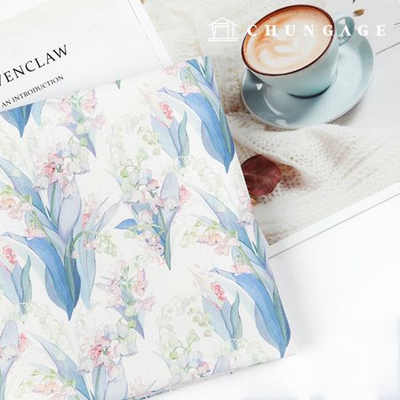 수려한 방울꽃 그림이 은은하게 펼쳐진 원단입니다. 차분하고 부드러운 곡선이 차분한 분위기를 연출해줍니다.