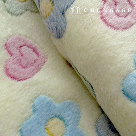 극세사원단 꽃무늬 플라워 천 광폭 겨울 원단 하트플라워 레몬 9546