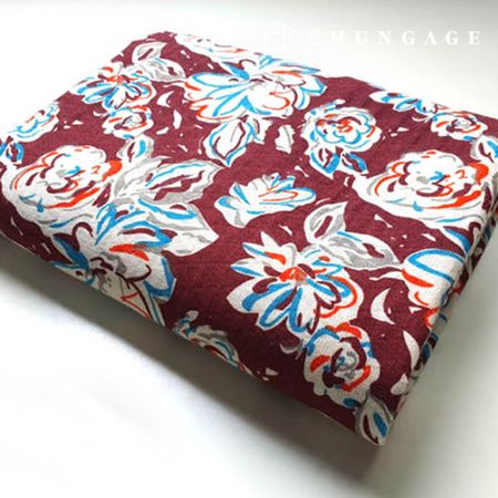 린넨원단 이중지 20수 자카드 대폭 유니크 플라워 와인 9487