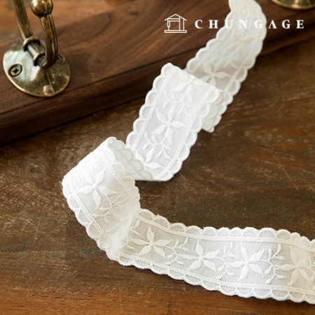 면 레이스 원단 면054 난초테이프 화이트 자수 레이스천