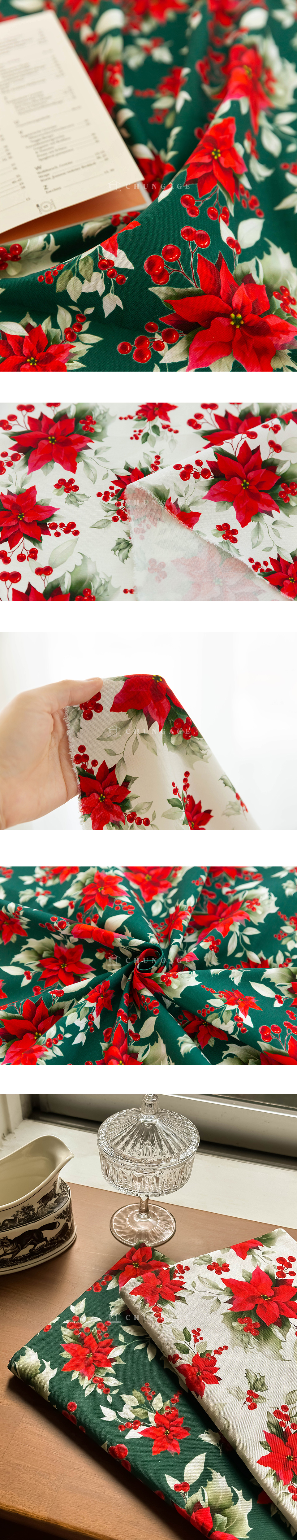 - home > Seasonal Fabrics - Summer Fabrics (Gauze fabric, Ripple fabric, Mesh fabric, Chiffon fabric, Human silk fabric), Winter fabric (Microfine yarn) > 2) F/WSeason (Winter Fabric) > 8] Christmas fabric > Cotton Oxford Fabric Christmas Wide Width Fabric Merry Blossom 2 types