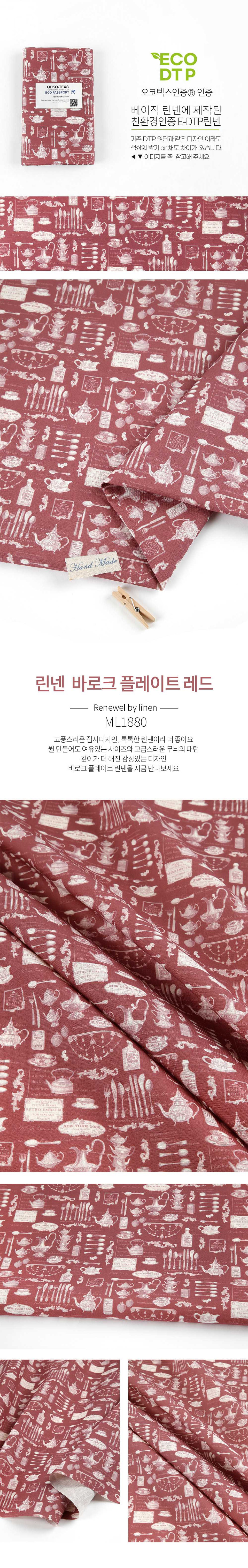 - home > New Fabric > Linen fabric, cotton linen, 11 count, eco-friendly E-DTP, wide width, baroque plate, red