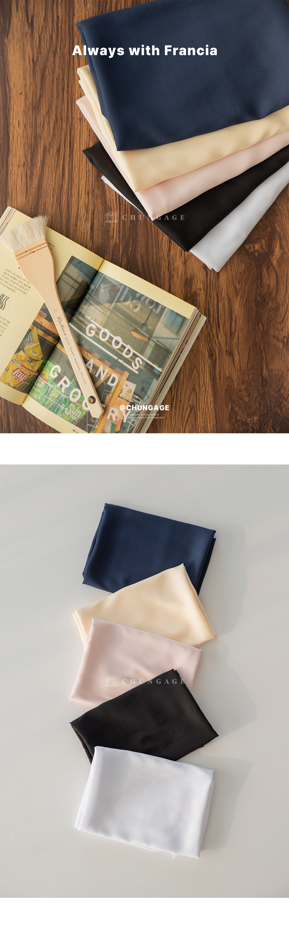 Clothing fabric poly plain fabric wide width francia 5 types